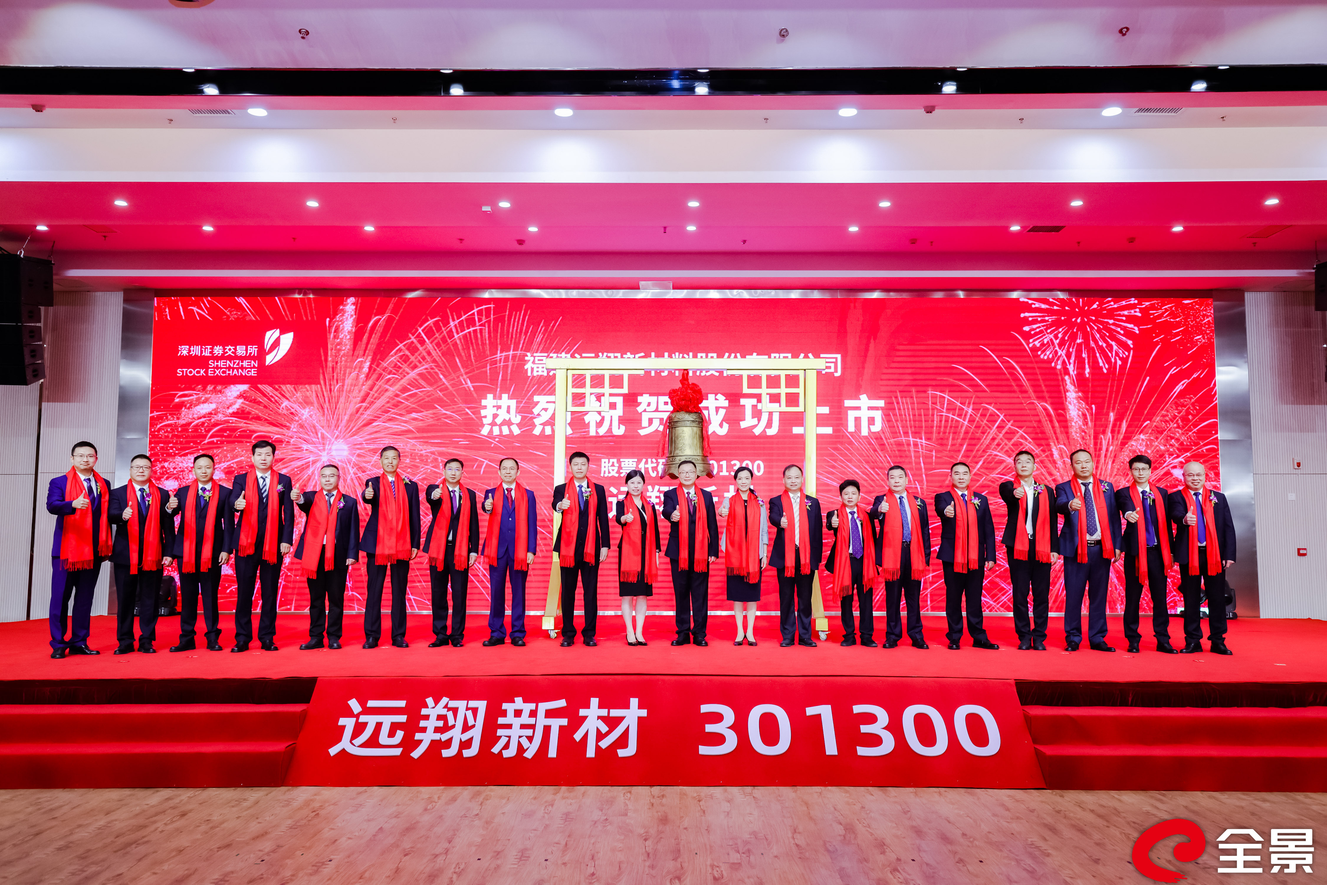 當天,作為股東代表,福創(chuàng)投公司董事長陳穎,副總經(jīng)理陳平,以及項目投資團隊受邀出席在福建邵武舉行的上市敲鐘儀式,共同見證遠翔新材正式登陸A股資本市場這一高光時刻。