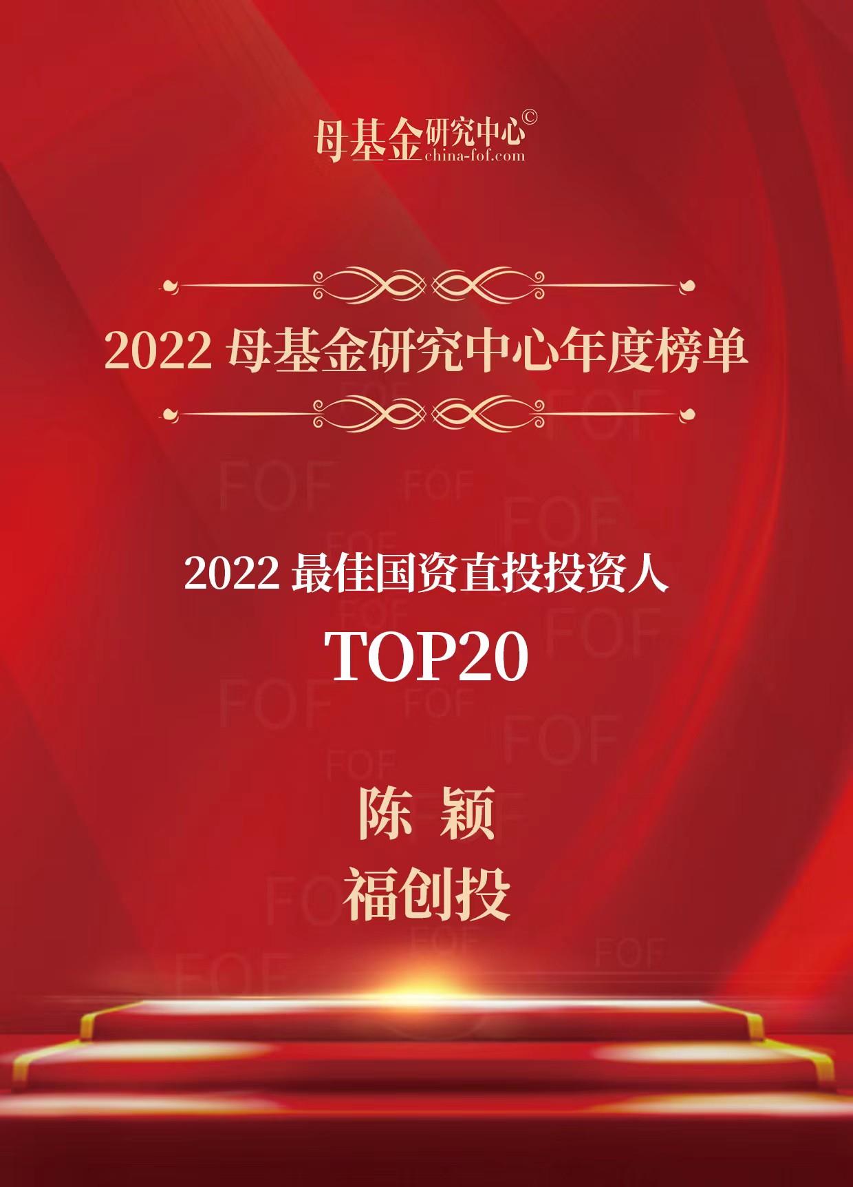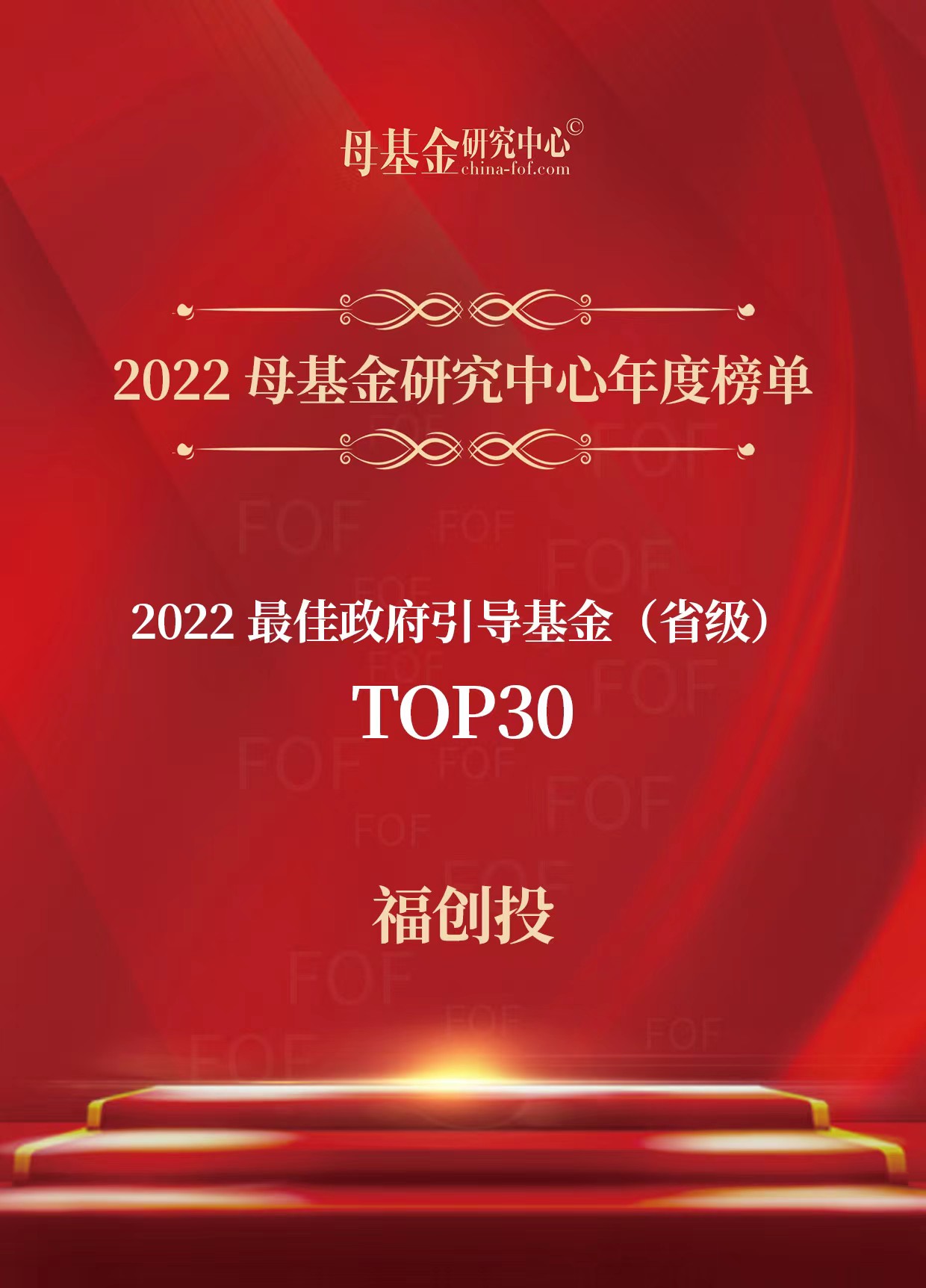 1月7日,母基金研究中心正式發(fā)布2022年度榜單。福創(chuàng)投榮登“2022最佳政府引導(dǎo)基金(省級(jí))TOP 30”,位列第9位;福創(chuàng)投董事長(zhǎng)陳穎同志榮登“2022最佳國(guó)資直投投資人TOP 20”,位列第7位。