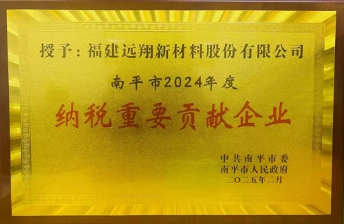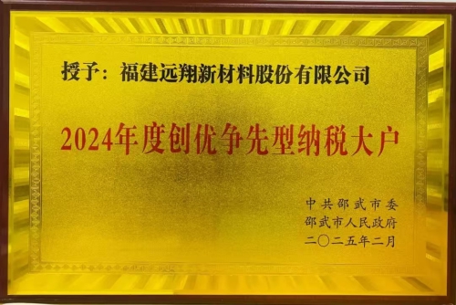近日,福創(chuàng)投已投企業(yè)福建遠翔新材料股份有限公司(以下簡稱“遠翔新材”)榮獲“南平市2024年納稅重要貢獻企業(yè)”、“2024年度創(chuàng)優(yōu)爭先型納稅大戶”兩項榮譽,此次獲獎不僅是對遠翔新材在經(jīng)濟貢獻方面的高度認可,更是對遠翔新材一直以來積極履行社會責任、助力地方經(jīng)濟發(fā)展的肯定。