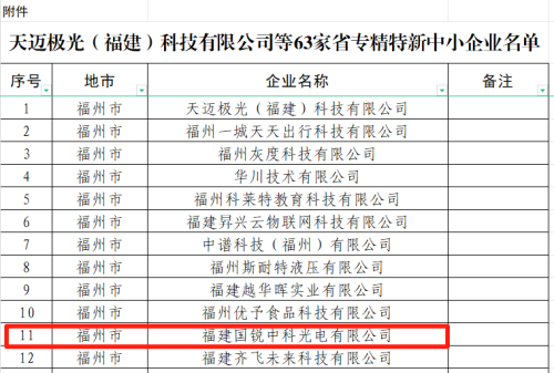 近日,福建省工業(yè)和信息化廳公布根據(jù)《福建省優(yōu)質(zhì)中小企業(yè)梯度培育管理實施細則》,經(jīng)研究,確認天邁極光(福建)科技有限公司等63家企業(yè)為福建省專精特新中小企業(yè)名單,。福創(chuàng)投已投企業(yè)福建國銳中科光電有限公司(后文簡稱“國銳中科”)憑借其先進的在3D打印技術(shù)及設(shè)備領(lǐng)域的創(chuàng)新實力與專業(yè)化發(fā)展成果,成功入選擬被認定為福建省專精特新中小企業(yè)。