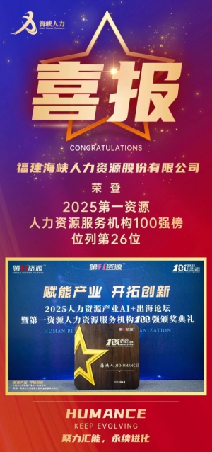 近日,福創(chuàng)投已投企業(yè)福建海峽人力資源股份有限公司(以下簡稱“海峽人力”)榮獲2025人力資源服務外包行業(yè)論壇暨第一資源HRO排行榜第9位,排名較上一年度上升2位。